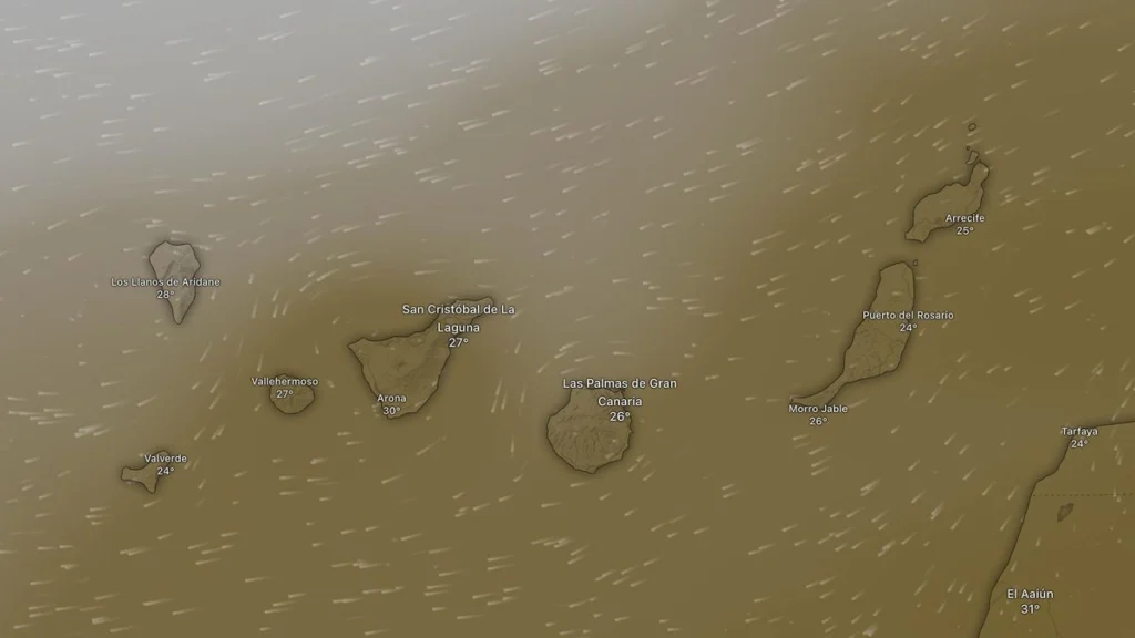 The calima warning for the entire island is active until 11:59 PM Saturday, with visibility expected to be as low as 3,000 meters. In low-lying areas, dust concentrations could exceed 150 micrograms per cubic meter.