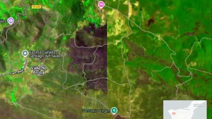 The Hammer satellite’s high-resolution images clearly show the 80-hectare affected area spanning El Tanque and Santiago del Teide municipalities. At 4:49 PM on Monday, the satellite passed over the island and generated data used to create a false-color map precisely outlining the fire’s perimeter. This technology proves invaluable for damage assessment and coordinating recovery efforts efficiently.